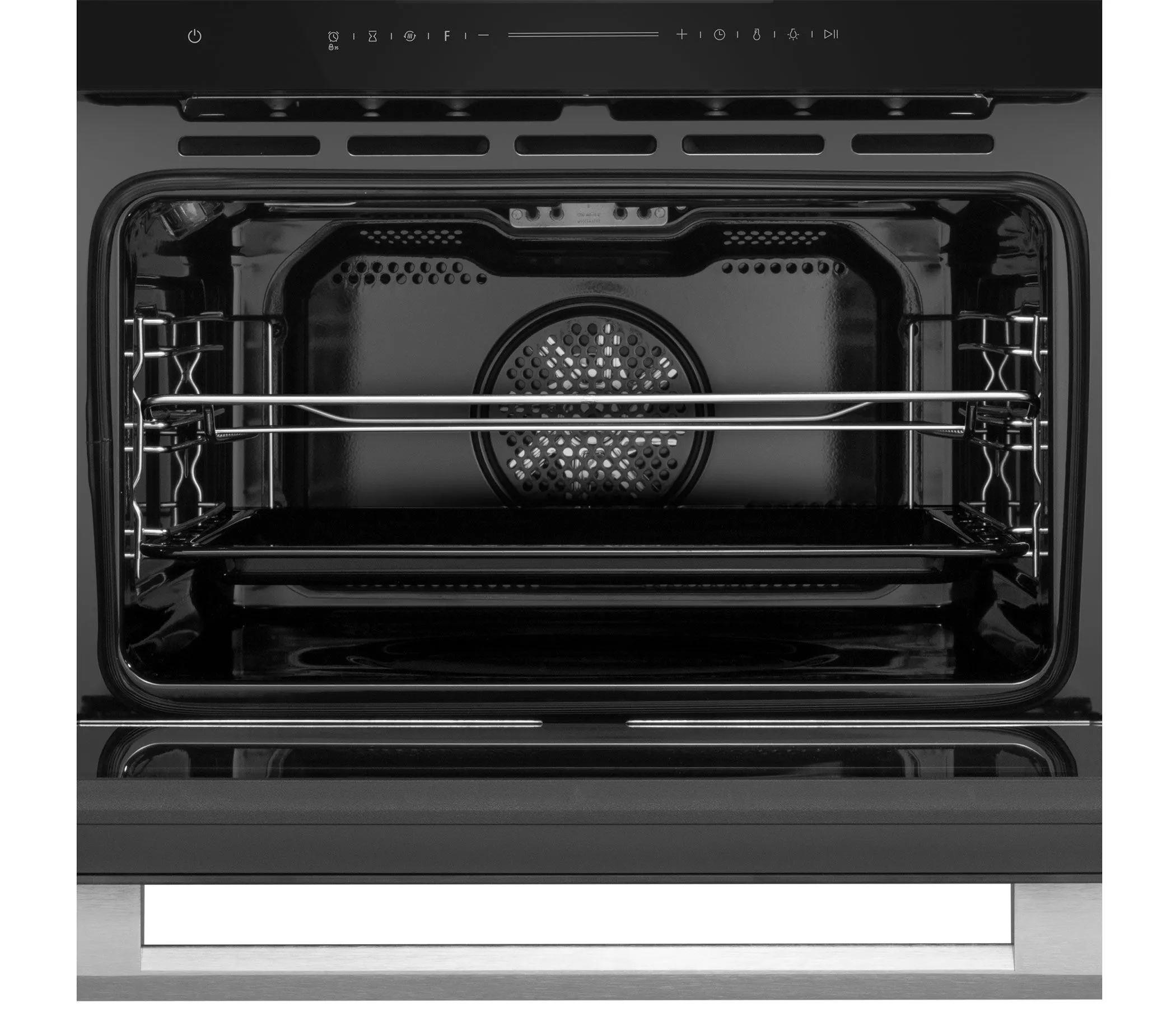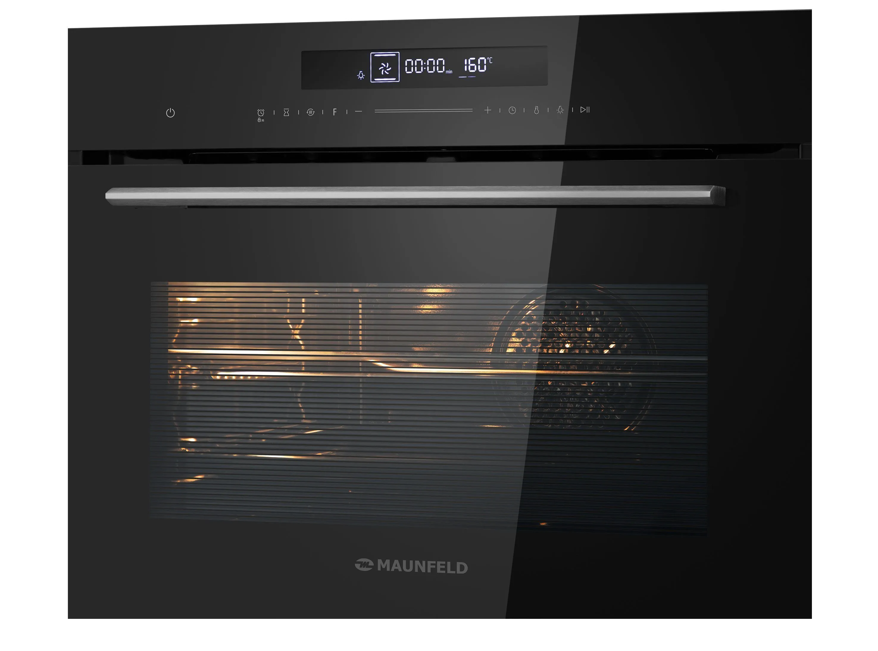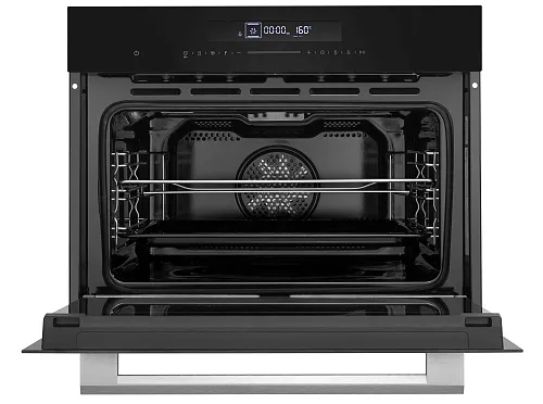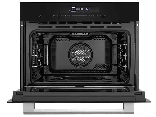 Объем камеры составляет 50 литров - этого достаточно для работы с большими блюдами. Внутренняя камера покрыта эмалью легкой очистки. Дверца изготовлена по технологии "Холодный фронт".