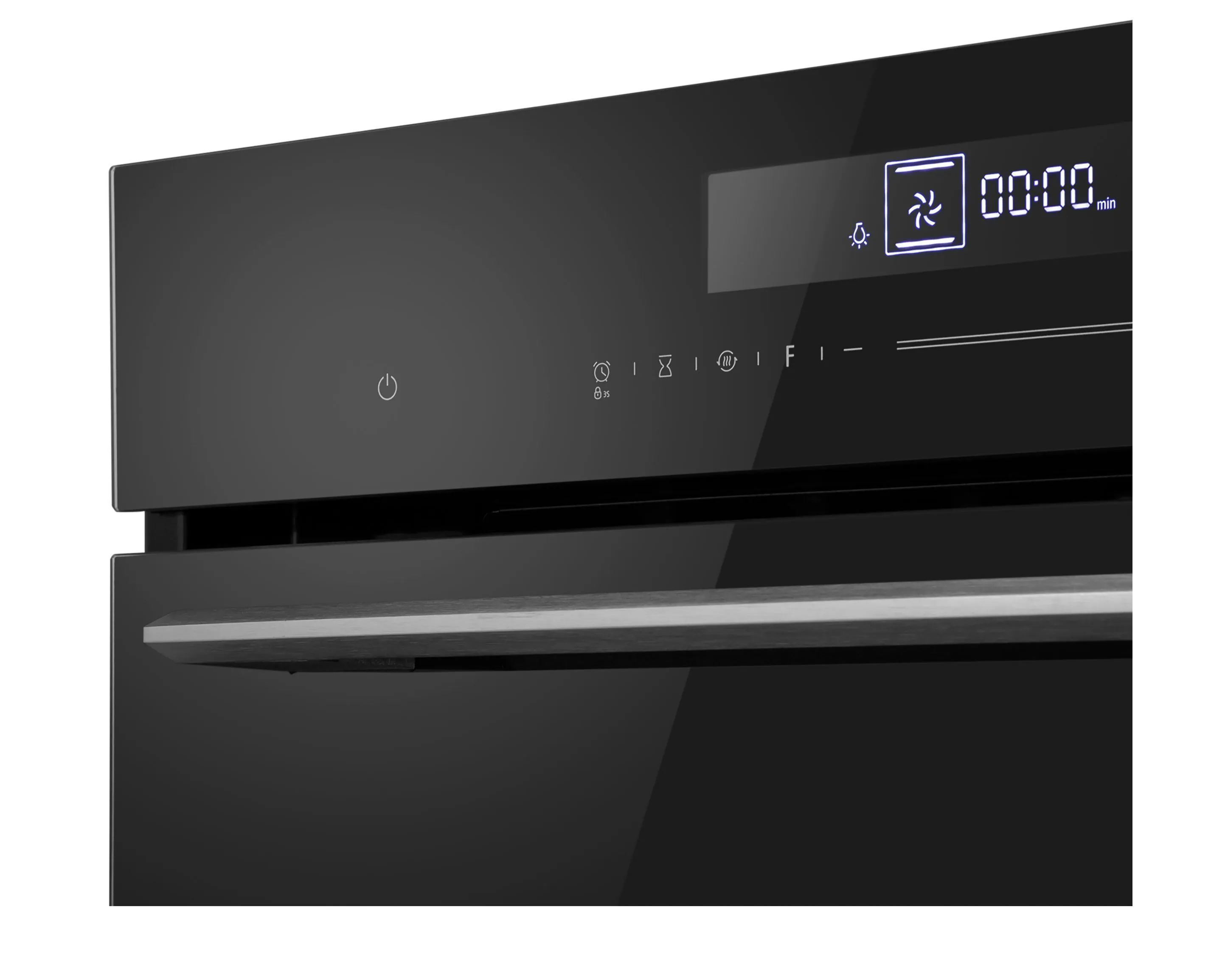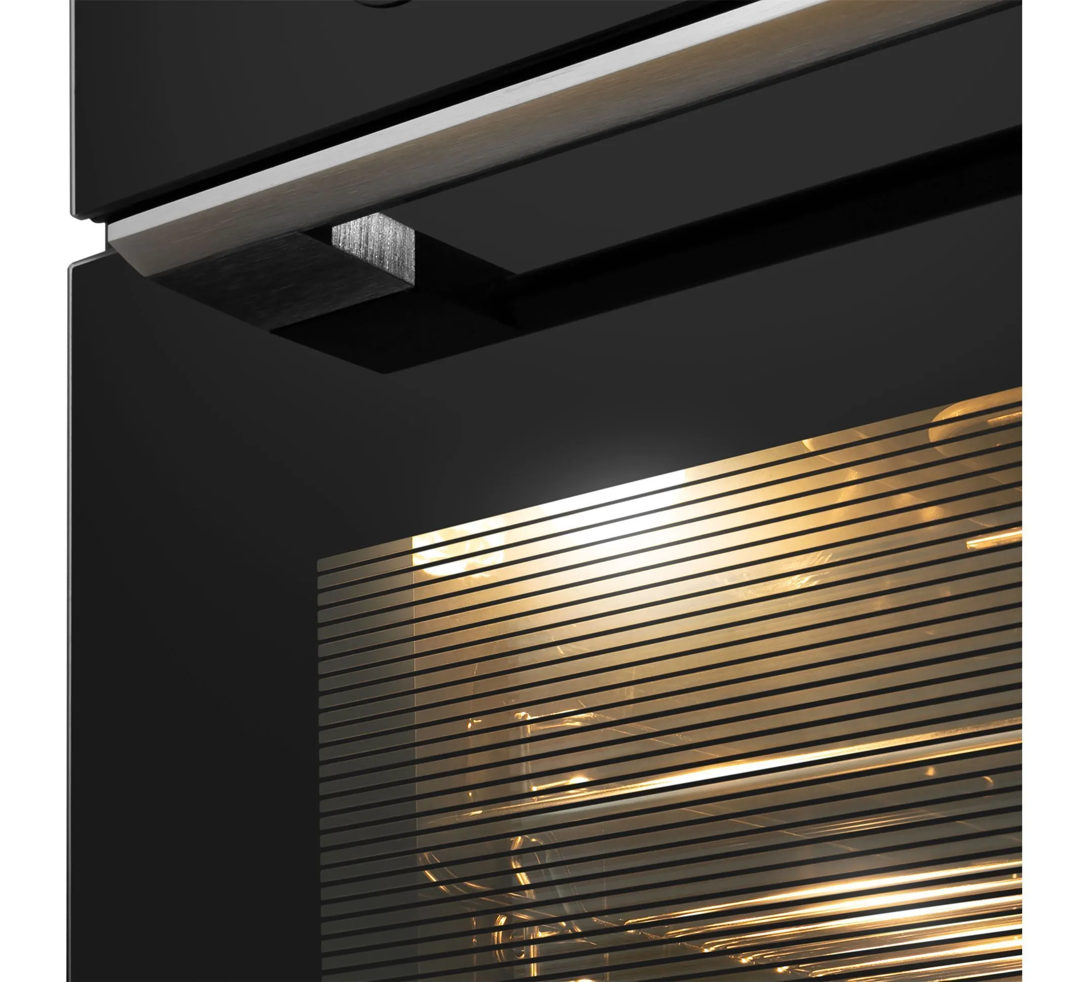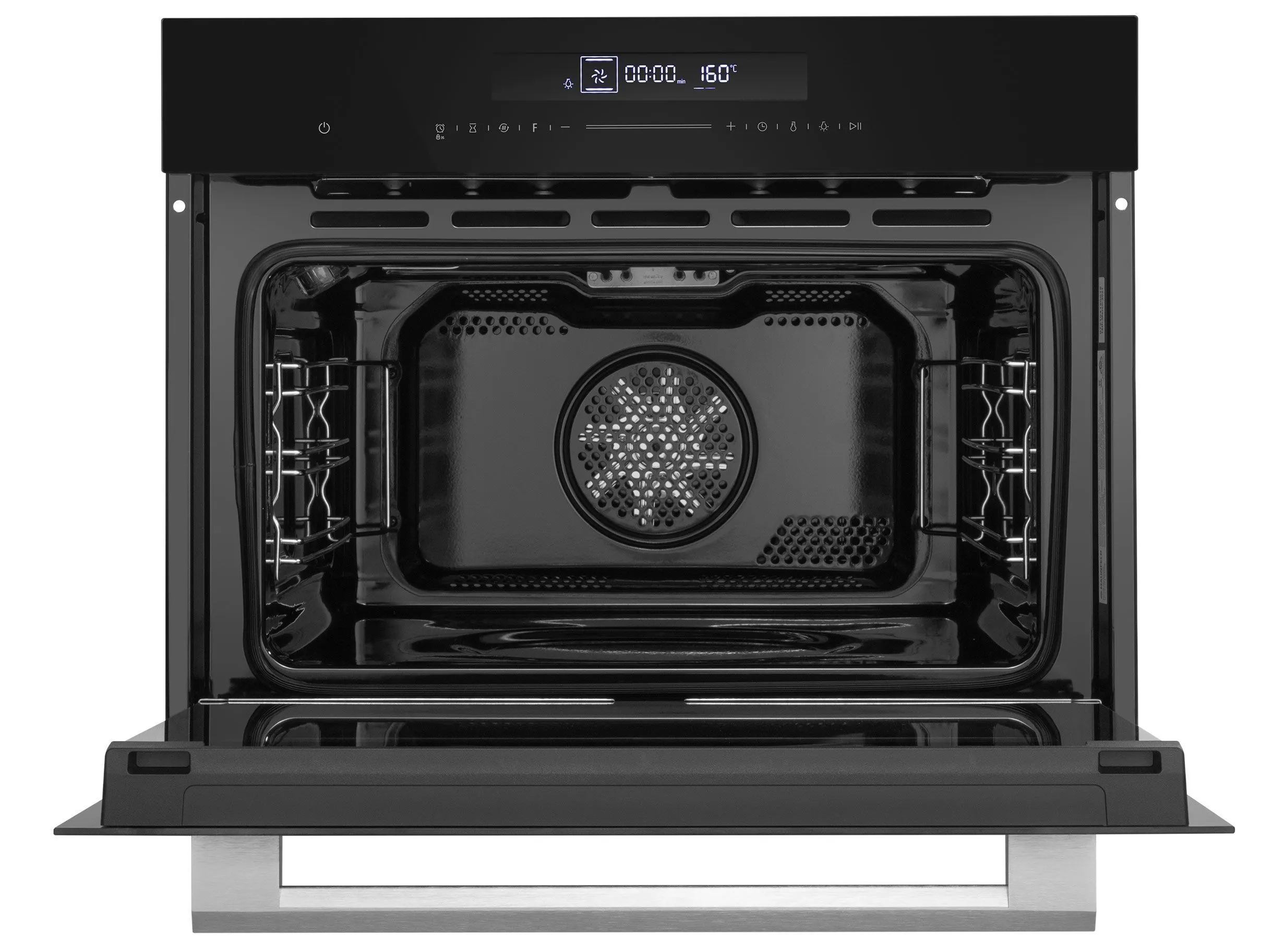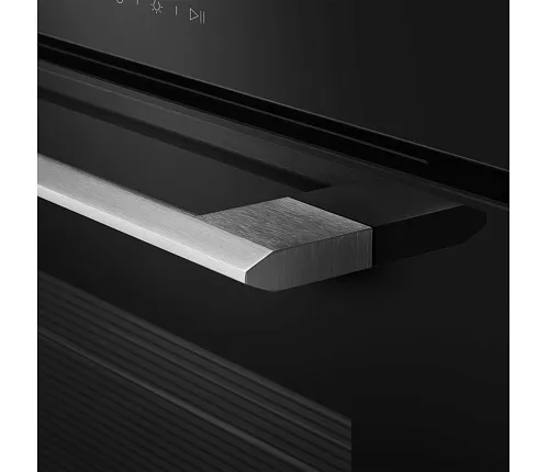 Фронтальная панель сделана из высококачественного жаропрочного стекла . Цельнометаллическая ручка дверцы из матированной нержавеющей стали лаконично поддерживает общий стиль и не нагревается во время готовки.