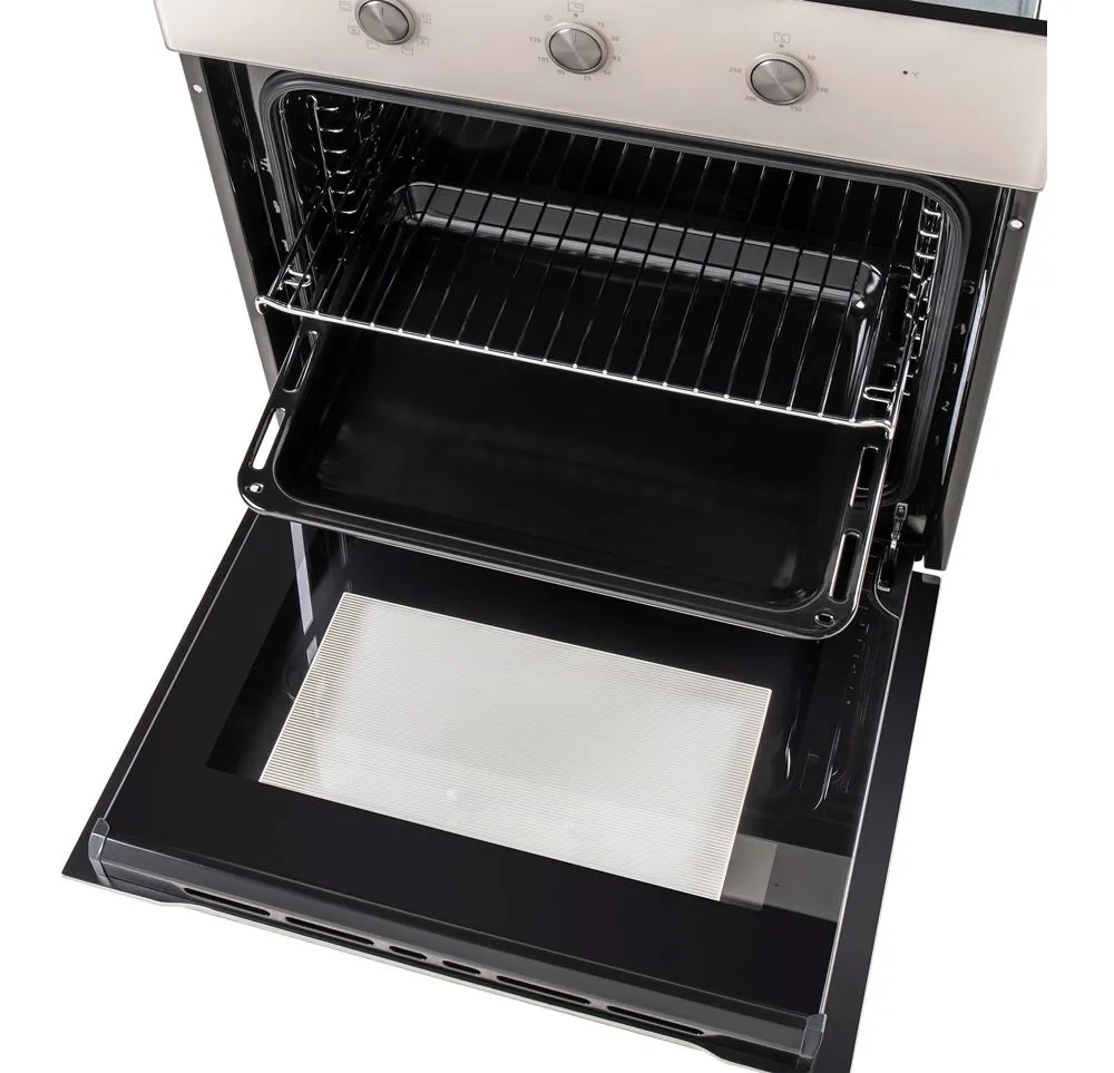 Дверца духового шкафа оснащена двойным стеклом - это гарантия медленного нагревания внешнего стекла, что создает холодный фронт и делает процесс приготовления безопасным исключая возможность ожога при касании.