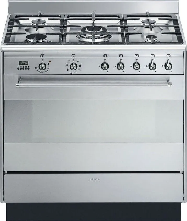 Варочный центр Smeg SUK91MFX9 — комбинированная модель с газовой варочной поверхностью. Автоматический электроподжиг позволяет не использовать спички и зажигалку. Газ-контроль перекроет подачу газа, если конфорки случайно погаснут, что гарантирует дополнительную безопасность при эксплуатации. Тангенциальная система охлаждения духового шкафа позволит не нагреваться наружному фронту. Эмаль Ever Clean легко отмывается от загрязнений и облегчит уход за прибором.