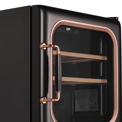 Модель станет прекрасным дополнением в дизайнером решение в с стиле ретро. Современная технология освещения зоны позволит вам в любое время эффектно продемонстрировать вашу винную коллекцию гостям. Каждая деталь модели гармонично дополняет друг друга, делая винный шкаф универсальным под любые стили интерьера.