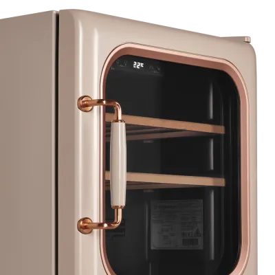 Модель станет прекрасным дополнением в дизайнером решение в с стиле ретро. Современная технология освещения зоны позволит вам в любое время эффектно продемонстрировать вашу винную коллекцию гостям. Каждая деталь модели гармонично дополняет друг друга, делая винный шкаф универсальным под любые стили интерьера.