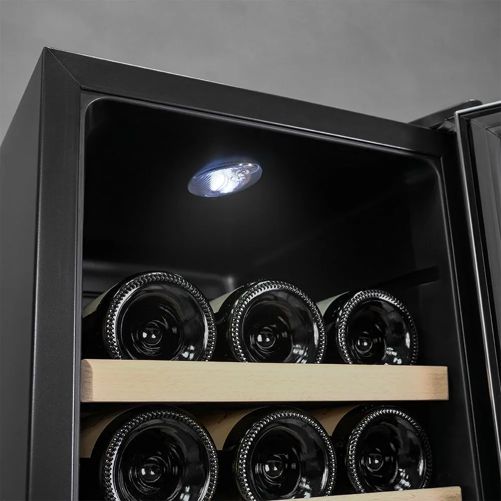 Термоэлектрический винный шкаф Meyvel MV18-BF1 (easy) обладает средней вместимостью и способен разместить в себе до 18 бутылок. Располагаются они на полках из массива бука. Внутреннее пространство шкафа имеет одну температурную зону с возможностью настраивать её в диапазоне от +10 °C до +18°C. Электронный термостат помогает стабильно поддерживать заданную Вами температуру. Холодильник поддерживает влажность в диапазоне 60-80%, как в настоящем винном погребе.