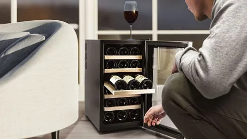 Двойное стекло с защитой от прямых УФ-лучей поддерживает качественные условия хранения вина.