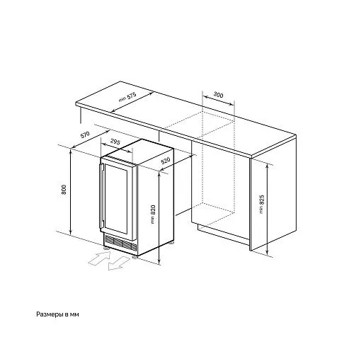 С вместимостью до 20 бутылок и 5 регулируемыми полками, шкаф дает возможность гибко организовать внутреннее пространство под разные размеры бутылок. Его компактные размеры (820х295х570 мм) позволяют легко вписать модель в любой интерьер, даже в ограниченных условиях.