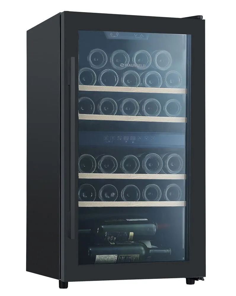 Шкаф имеет две зоны, для каждой из них можно задать свой режим охлаждения — это актуально для тех, кто планирует хранить дома разные виды напитка: красное, белое, шампанское.