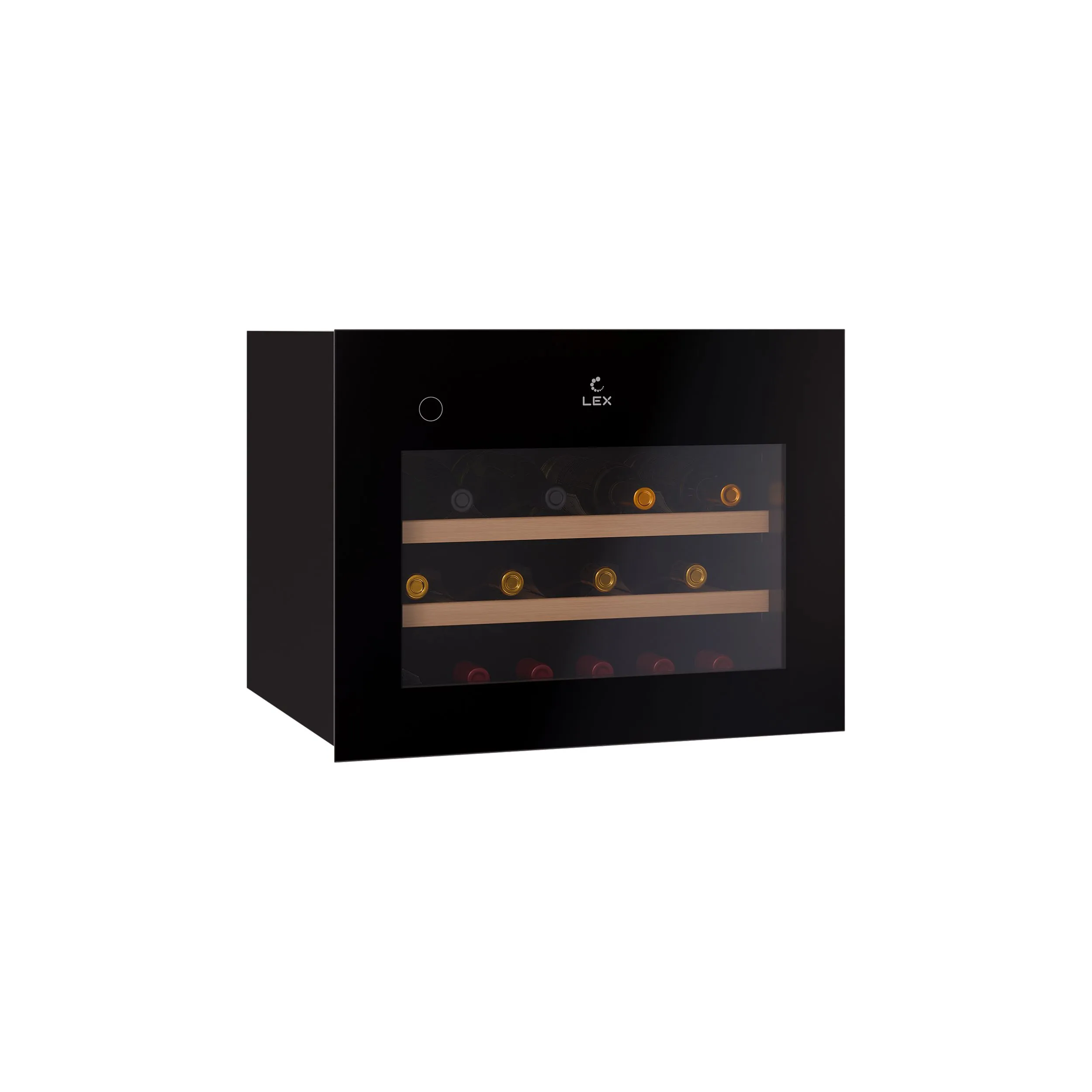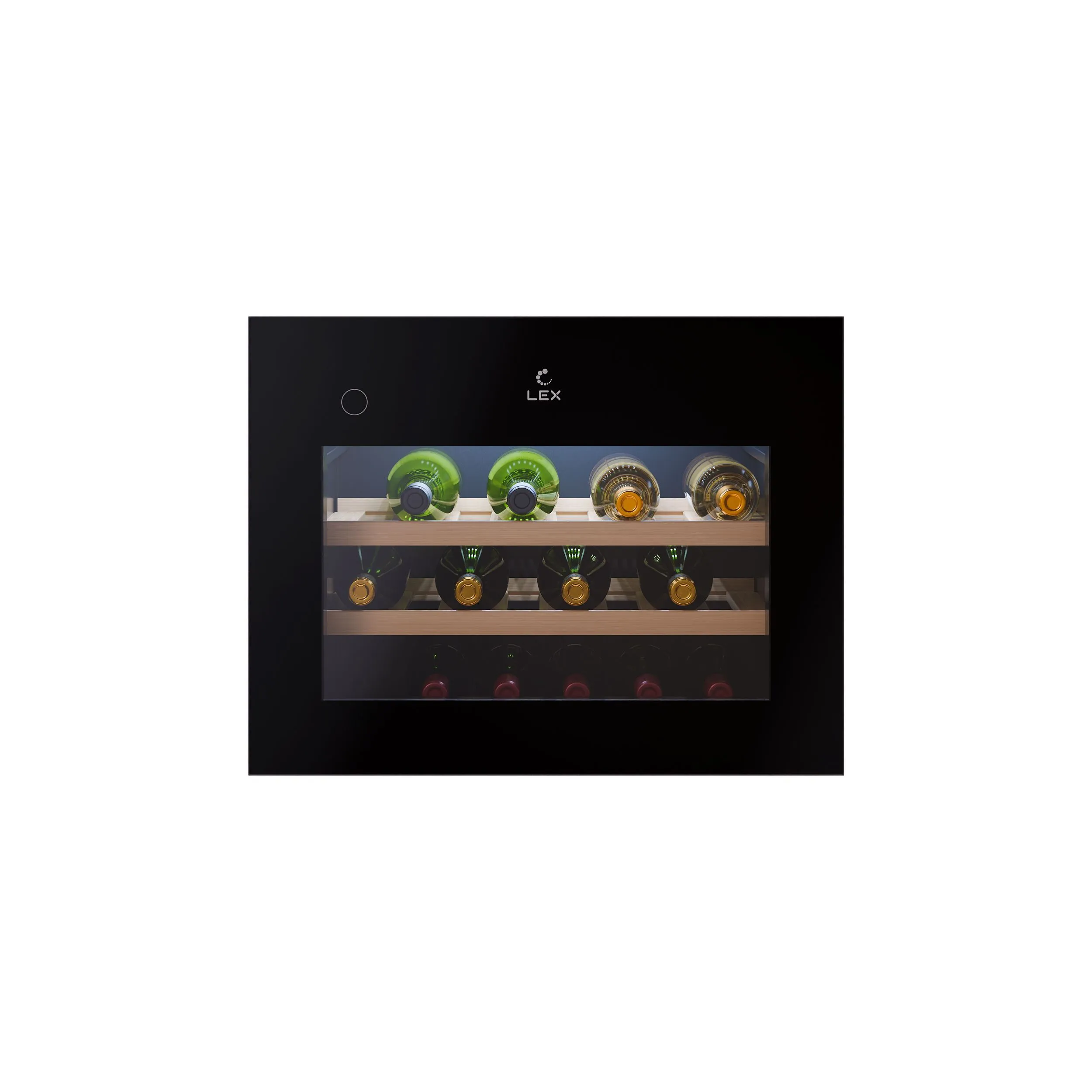 Сенсорная панель управления позволяет легко выбрать нужную температуру, а дисплей всегда показывает текущие настройки. LED-подсветка внутри шкафа освещает бутылки, что облегчает их поиск и добавляет комфорта при использовании шкафа даже в темное время суток.