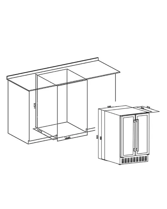 Винный шкаф предназначен для встройки под столешницу.