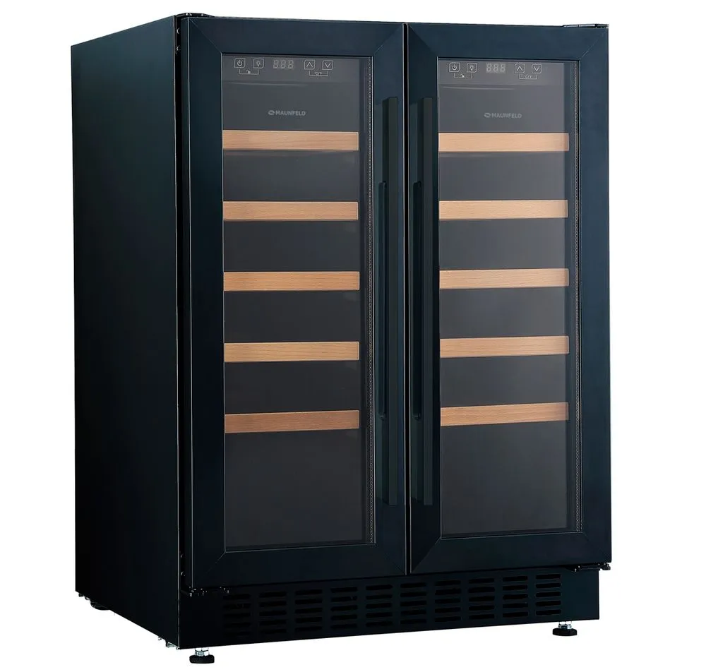 Шкаф имеет две зоны, для каждой из них можно задать свой режим охлаждения — это актуально для тех, кто планирует хранить дома разные виды напитка: красное, белое, шампанское.