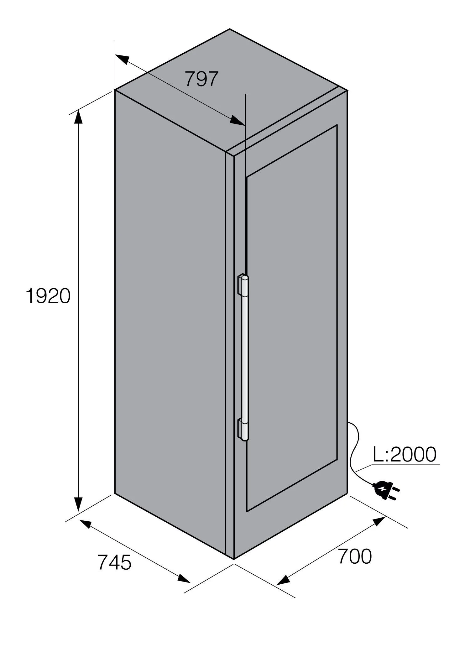 | Ширина шкафа для установки | 700 мм | |