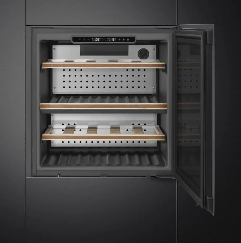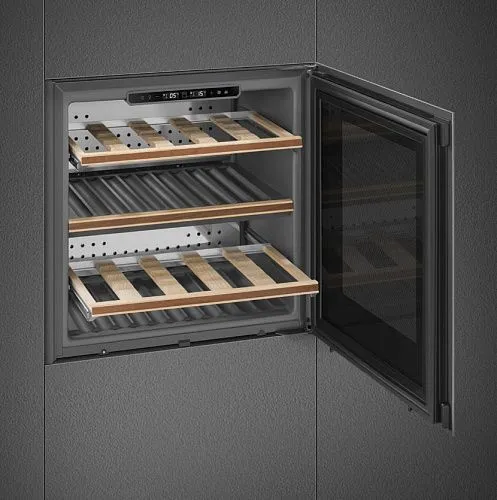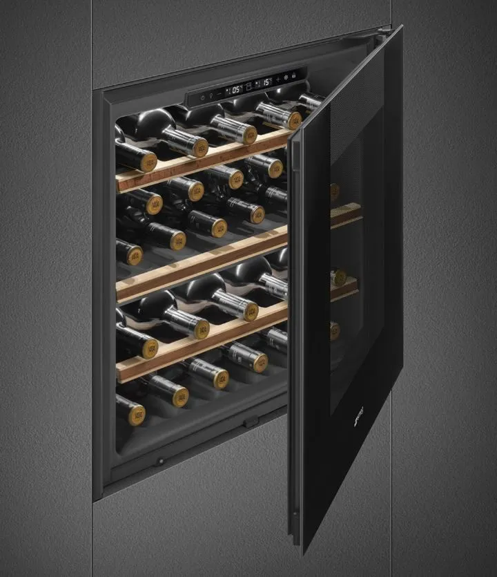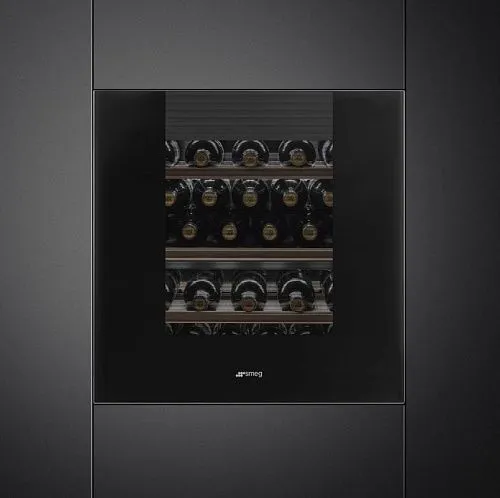 Встраиваемый холодильный шкаф для вина SMEG CVI329X3 из коллекции Classica выполнен в цвете «черное стекло». Прибор вмещает 29 бутылок, что позволит хранить оптимальное количество вин. Глянцевая поверхность и сенсорное управление сочетают в себе стильный дизайн и функциональность современных технологий. При повышении температуры внутри прибора — раздастся акустический сигнал, что обеспечит надежное хранение вин.