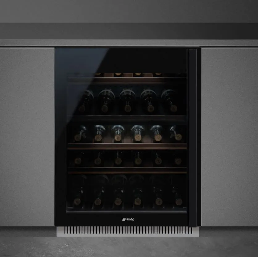 Холодильный шкаф для вина Smeg CVI638LN3 из коллекции Dolce Stil Novo выполнен в универсальном черном цвете. Прибор оснащен удобным сенсорным управлением, при помощи которого можно быстро настроить все необходимые параметры работы устройства, в зависимости от вида хранящегося напитка. Деревянные полки на телескопических направляющих легко выдвигаются, что гарантирует комфорт эксплуатации. Стекло с защитой от УФ-лучей обеспечивает сохранность цвета и вкуса вина.