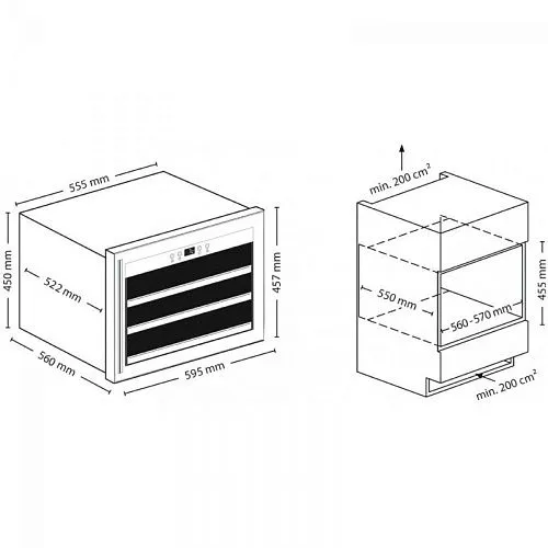 Минимальный размер ниши для встраивания (ВxШxГ), мм 455x565х550