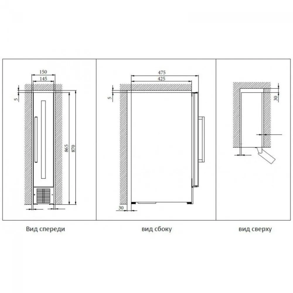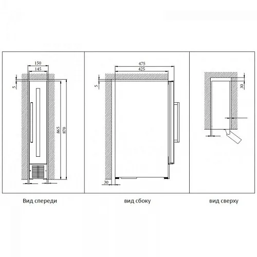 Минимальный размер ниши для встраивания (ВxШxГ), мм 870х150х455