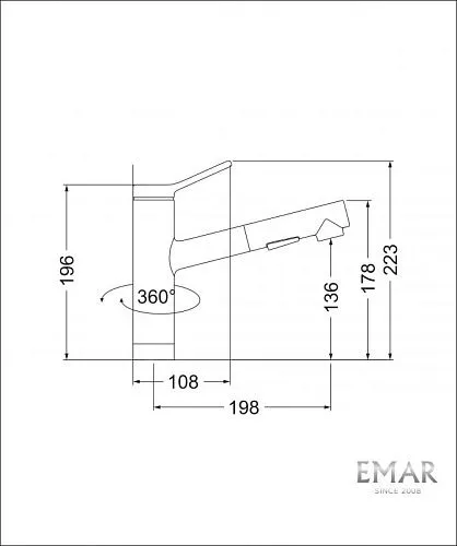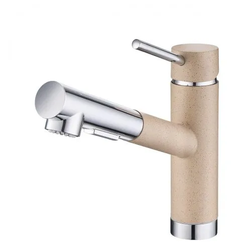 Кухонный смеситель с выдвижным изливом. Однорычажное управление поможет легко регулировать температуру и напор подачи воды. Выдвижной излив увеличивает площадь и эффективность использования смесителя.