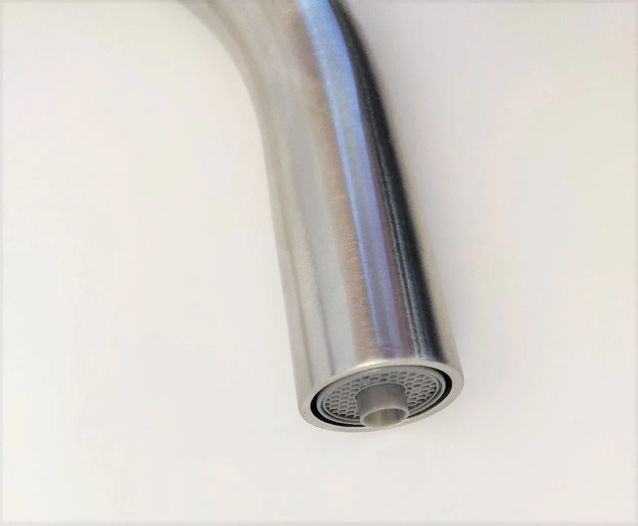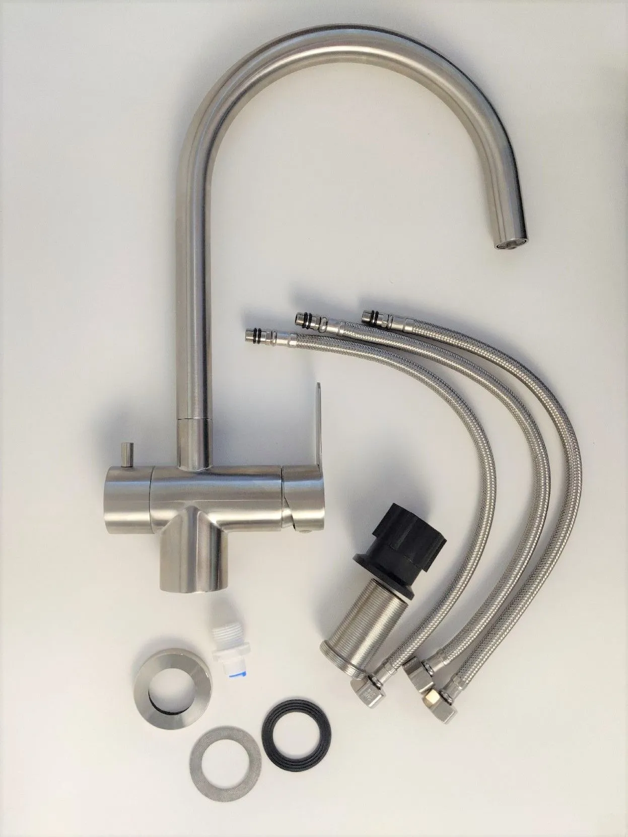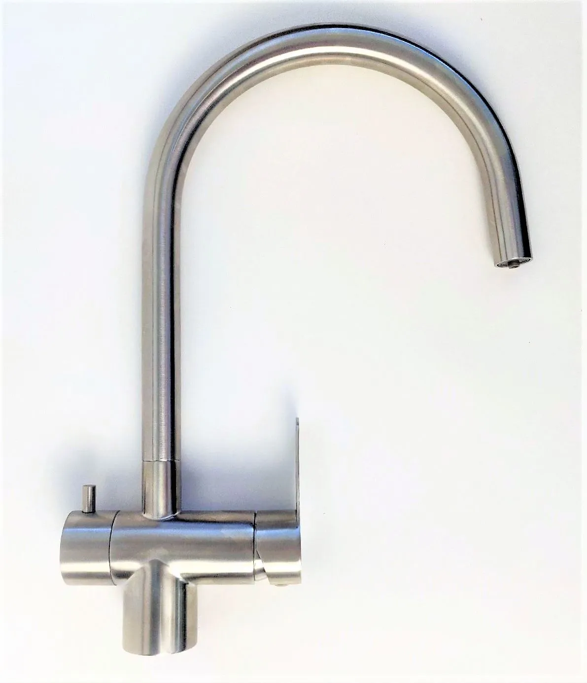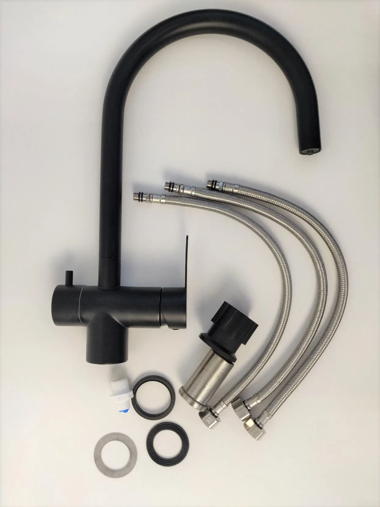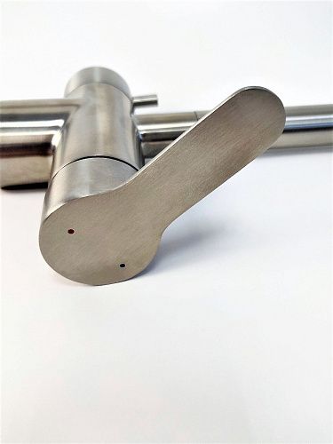 Кухонный смеситель с возможностью подключения фильтра для очистки воды. Фильтрованная вода подается отдельной ручкой через отдельную трубку и не смешивается с водопроводной водой. Однорычажное управление поможет легко регулировать температуру и напор подачи воды. Соответствует стандартам DIN DVGW.