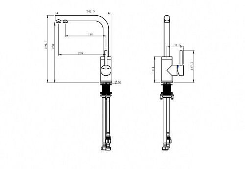Кухонный кран из нержавеющей стали, наименования модели EMAR ЕСB - 7015 Black. Смеситель с керамическим дисковым картриджем. Двухаэраторный, с функцией подачи питьевой воды. Рабочая температура подачи воды до 80 °С.