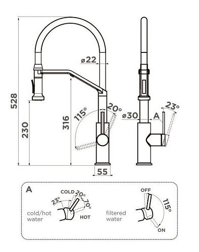 Новая удобная технология системы ручки 2 в 1 MULTI позволяет переключить водопроводную воду на фильтрованную в одно касание;
