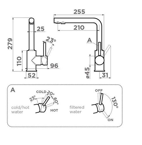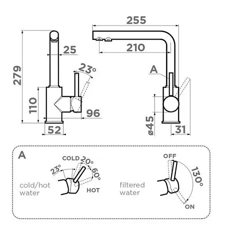 • Технология PURE LIFE: Подключение фильтра для очистки воды. Фильтрованная вода подается по отдельной трубке и не смешивается с водопроводной водой;