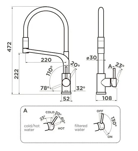 | Высота смесителя, мм | 472 | |