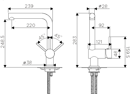 | Высота излива, мм | 248.5 | |