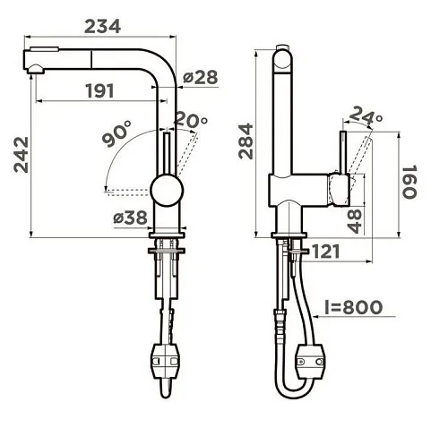 | Длина излива, мм | 234 | |