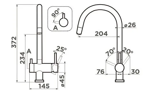 | Длина излива, мм | 204 | |