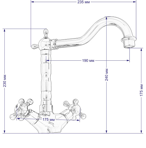 | Назначение смесителя | для кухонной мойки | |