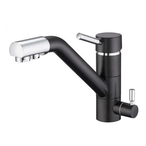 Кухонный смеситель с возможностью подключения фильтра для очистки воды. Фильтрованная вода подается отдельной ручкой через отдельную трубку и не смешивается с водопроводной водой.