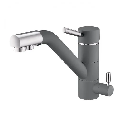 Кухонный смеситель с возможностью подключения фильтра для очистки воды. Фильтрованная вода подается отдельной ручкой через отдельную трубку и не смешивается с водопроводной водой.
