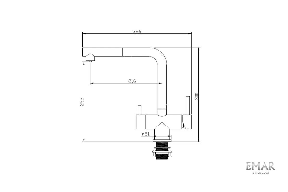 Кухонный смеситель с возможностью подключения фильтра для очистки воды. Фильтрованная вода подается отдельной ручкой через отдельную трубку и не смешивается с водопроводной водой.