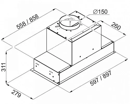 Встраиваемая вытяжка монтируется в шкаф над поверхностью плиты. На ваш выбор можно сделать отвод в вентиляционное отверстие или использовать сменный угольный фильтр.