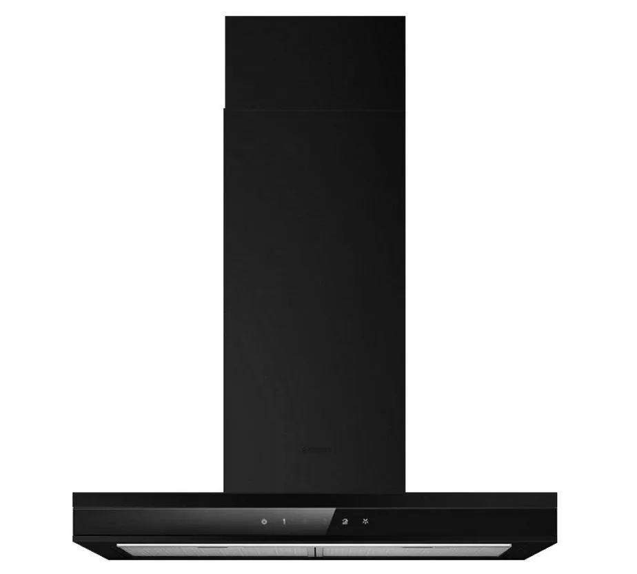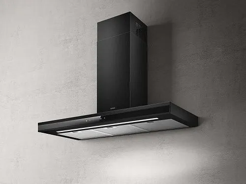 Т-образная модель поддерживает 3 скорости очистки воздуха. Также предусмотрен специальный интенсивный режим, который следует активировать во время готовки на нескольких конфорках. Сенсорная панель управления обеспечивает повышенный комфорт при выборе настроек. Многоразовый жировой фильтр из алюминия можно мыть в посудомоечной машине (деталь входит в комплектацию). Вытяжка черного цвета с серебристыми элементами будет отлично смотреться в интерьере современной кухни, особенно в стиле хай-тек, минимализм, лофт или скандинавский. Класс энергетической эффективности прибора — А.