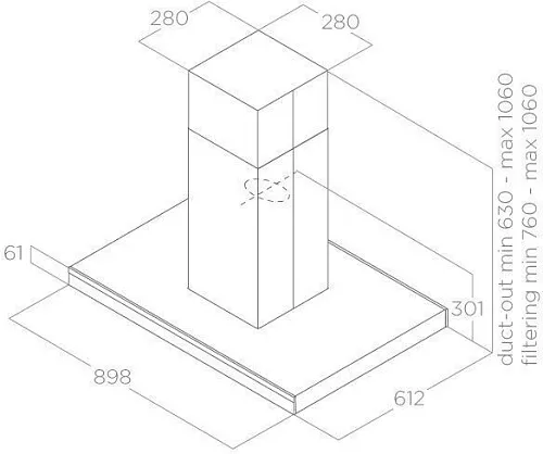 Вытяжка премиум-класса имеет высокую производительность, достигающую 1300 м3/час (свободный выход). Итальянская турбина мощностью 277 Вт рассчитана на много лет интенсивной эксплуатации. Двигатель функционирует тихо и экономично, ничто не будет отвлекать вас от занятий кулинарным творчеством. Воздухоочиститель без купола рассчитан на работу в режиме отвода. Для отведения воздушного потока необходимо подключиться к вентиляционному каналу. Диаметр воздуховода равен 150 мм. Светодиодная лента с цветовой температурой 3000 К обеспечивает комфортную и безопасную эксплуатацию.