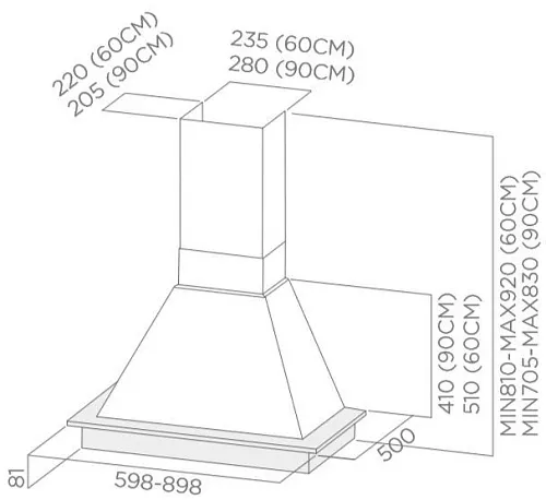 | Ширина вытяжки, мм | 598 | |
