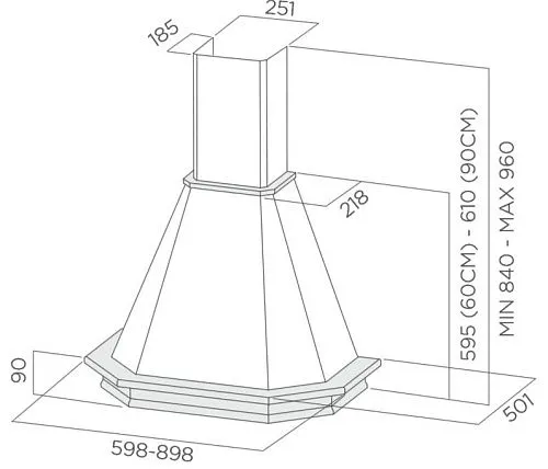 | Ширина вытяжки, мм | 598 | |