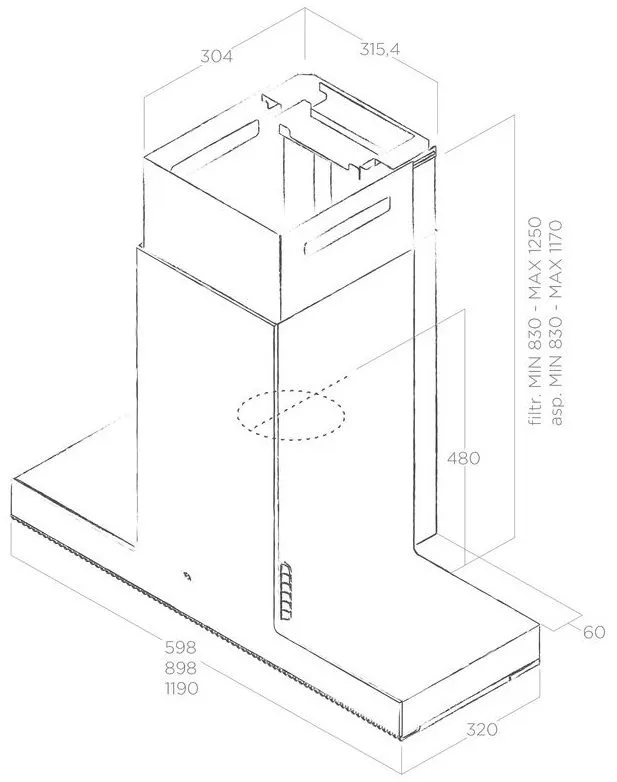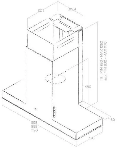 Вытяжка отличается не только эффектным внешним видом, но и впечатляющими техническими показателями. Мотор, обеспечивающий производительность в 1200 м3/час, работает очень тихо (уровень шума 64 дБ на максимальной скорости), а также имеет высокий класс энергоэффективности. вытяжное устройство можно установить над варочной поверхностью шириной до 60 см.