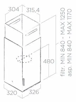 Элегантный корпус высотой 125 см, шириной и глубиной 32 см крепится к потолку, так что вытяжка относится к островному типу. На гладкой поверхности имеется логотип производителя и компактно расположенная панель управления, позволяющая переключаться между скоростями. Сенсорное управление также включает и выключает и выключает подсветку. Ее можно использовать не только для того, чтобы определять степень готовности блюд на плите, но и в качестве дополнительного источника света во время ужина. Яркое, но не бьющее по глазам светодиодное освещение очень экономично — потребление составляет всего 7 Вт. А вся вытяжка — 260 Вт. Класс энергопотребления — А, так что за год вы сможете неплохо сэкономить на счетах за электроэнергию. А низкий уровень шума (53 дБ) не будет раздражать даже при работе мотора на максимальных оборотах. Модель будет находкой для тех, кому важно сочетание качества и стиля.