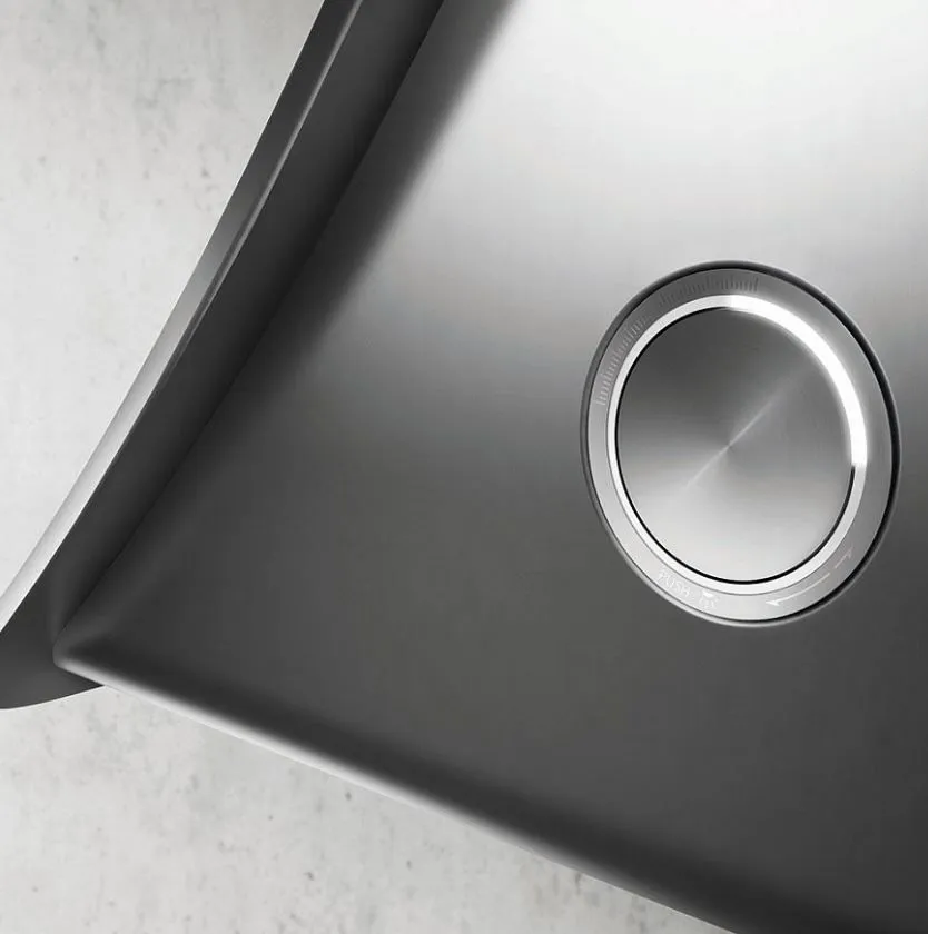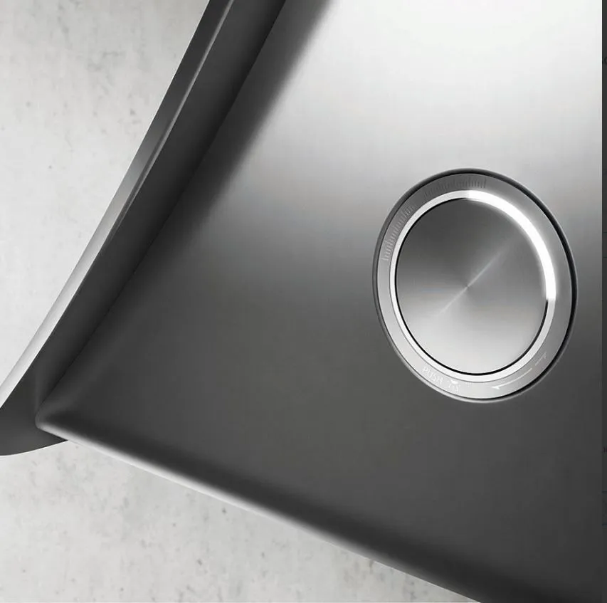 На боковой части вытяжки Элика NUAGE 75 расположен вращающийся программатор. В обычном состоянии он утоплен внутрь. Нажатием на диск и поворотом его до нужного значения регулируются настройки.