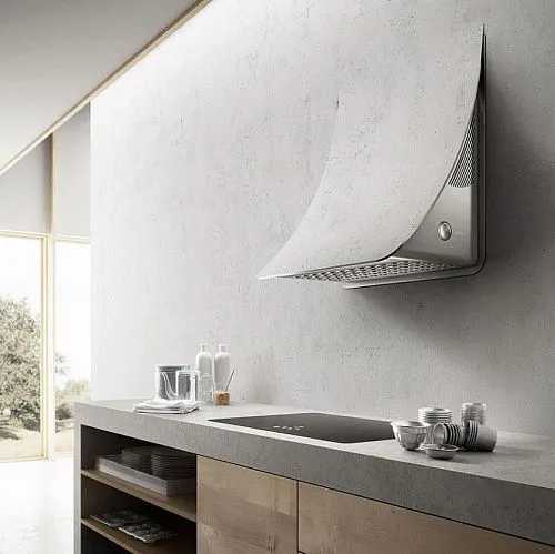 Вытяжка ELICA NUAGE 75 Оригинальная модель может сливаться со стеной, для этого на её переднюю панель крепится гипсокартон, которому придаётся желаемый цвет и рисунок. Чаще всего это обои или краска, использованные для помещения, что позволяет данной технике быть практически незаметной в интерьере. Яркое освещение зоны приготовления обеспечивает светодиодная лента STRIP LED.