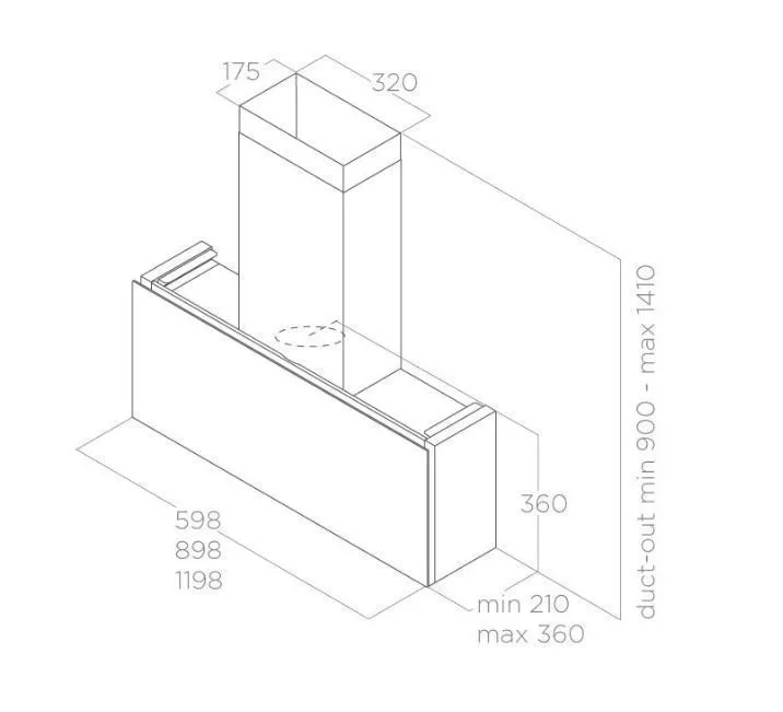 Первая полностью вертикальная вытяжка, с максимальной универсальностью монтажа и возможностью регулировки глубины от 21 см до 36 см.