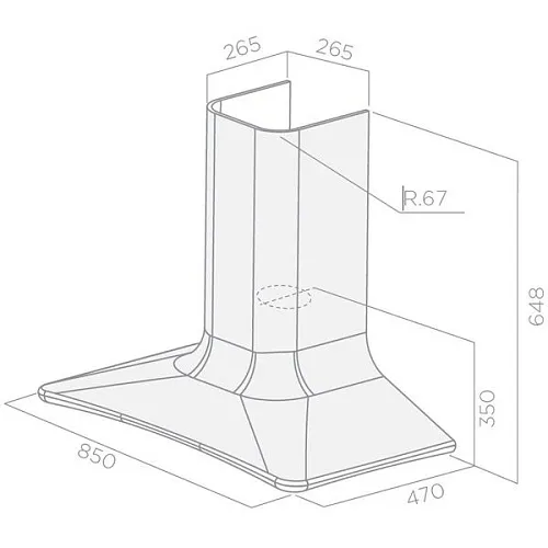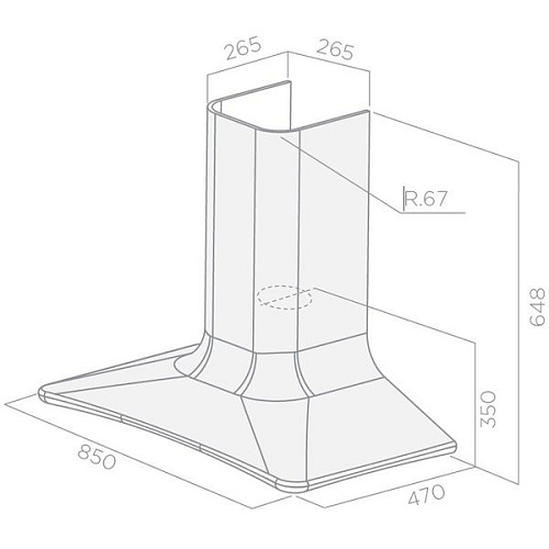 Ширина вытяжки составляет от 85 см, она подходит большинству варочных панелей и кухонных плит. Вытяжка крепится к стене и может подключаться к воздуховоду для работы в режиме вентиляции. В таком случае первичная очистка воздуха осуществляется жироулавливающим фильтром из алюминия. Также вытяжка может работать в режиме рециркуляции, для чего необходимо устанавливать угольный фильтр. Владелец может управлять работой данной вытяжки с помощью сенсорной панели, размещенной в передней части корпуса. Пиктограммы имеют светодиодную подсветку, которая упрощает выбор скоростей работы вентилятора. Кроме 3 классических режимов пользователь может включать интенсивную программу, которая через время отключается.