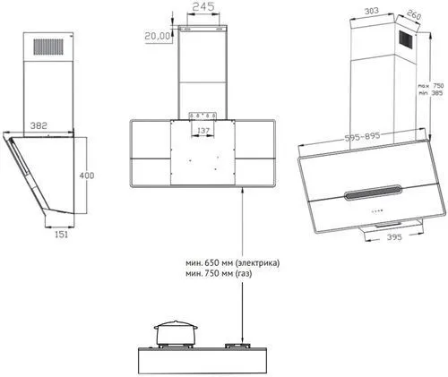 | Ширина вытяжки, мм | 600 | |