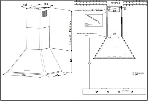| Ширина вытяжки, мм | 600 | |