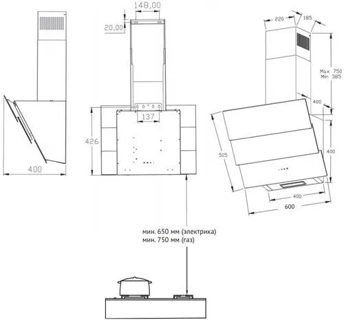 | Ширина вытяжки, мм | 600 | |