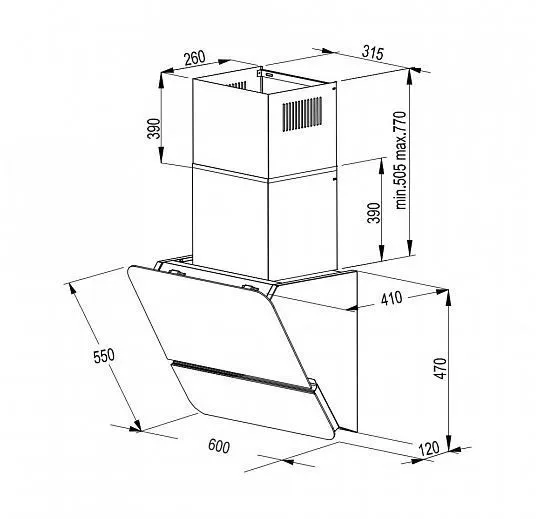 | Ширина вытяжки, мм | 600 | |