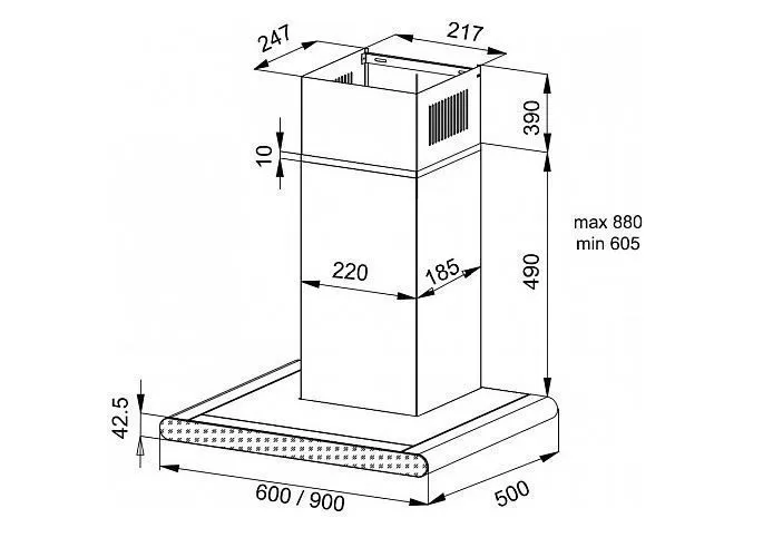 | Ширина вытяжки, мм | 600 | |