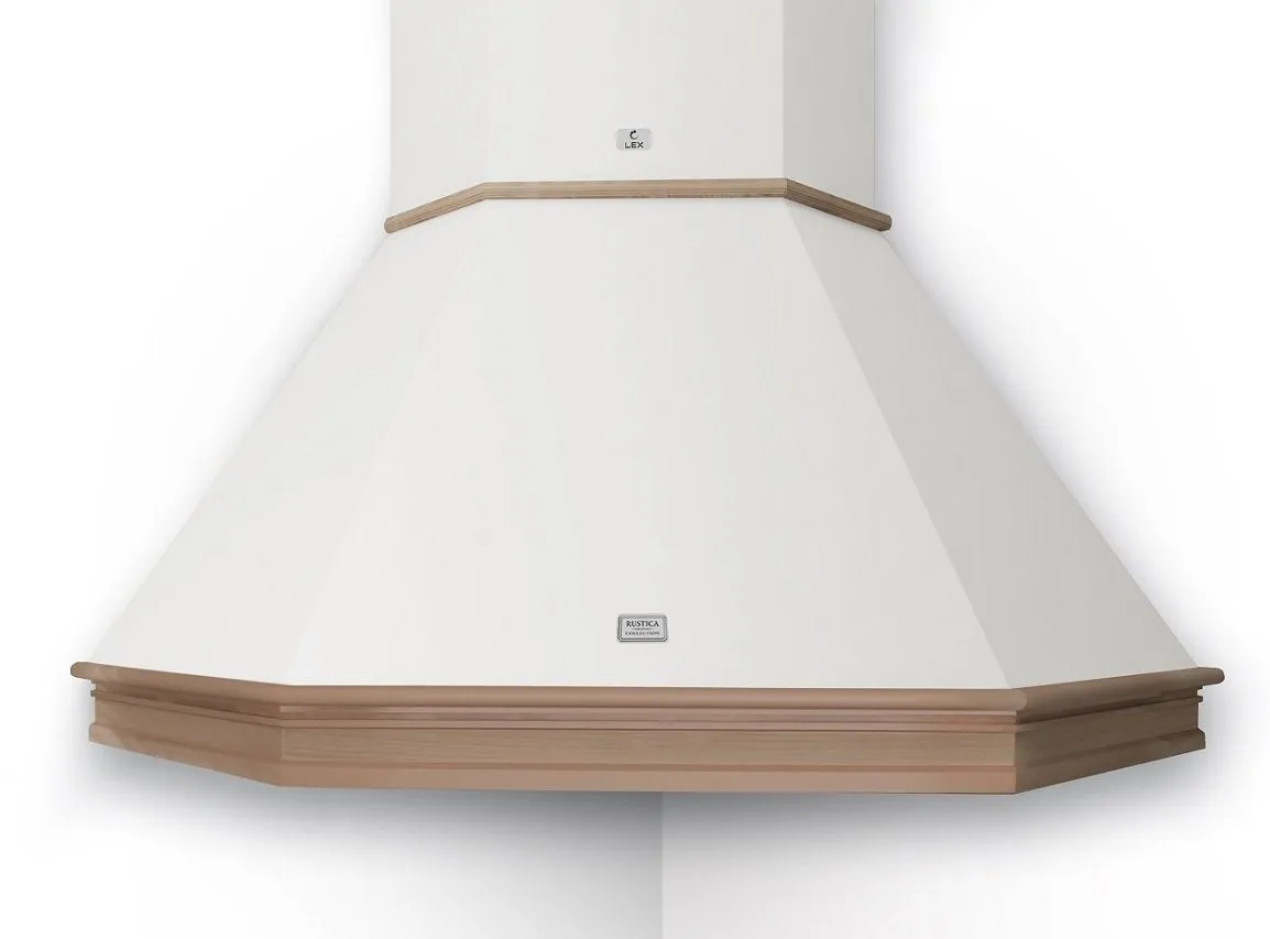Угловая кухонная вытяжка LEX Gloria white оборудована производительным мотором с удобным слайдерным управлением и встроенным ярким освещением. Дизайн вытяжки выполнен в стиле "рустика", отделка содержит декоративные деревянные элементы.
