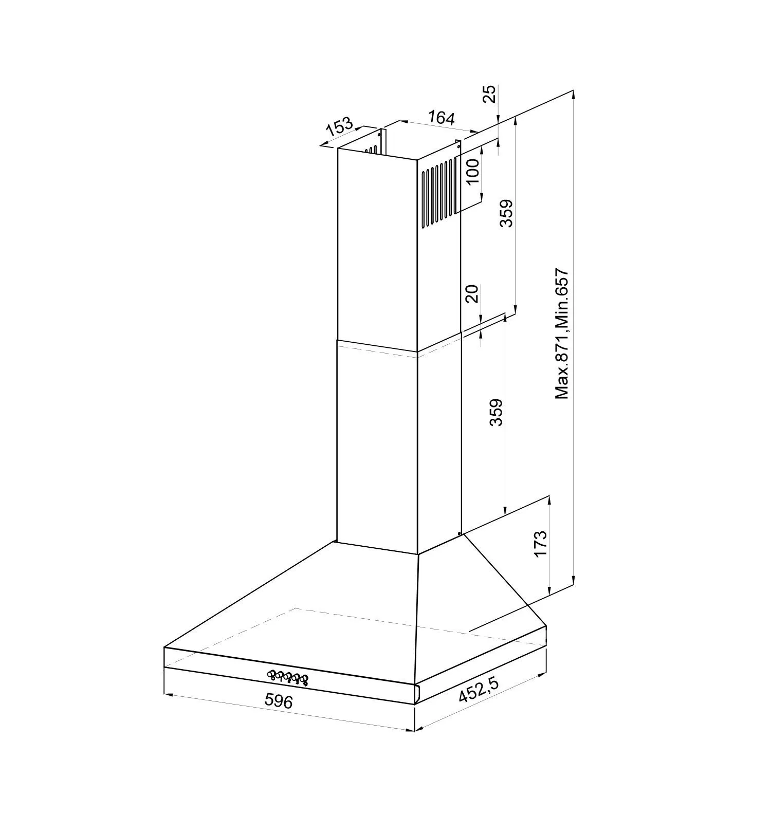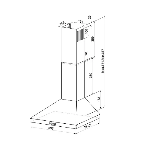 | Ширина вытяжки, мм | 596 | |