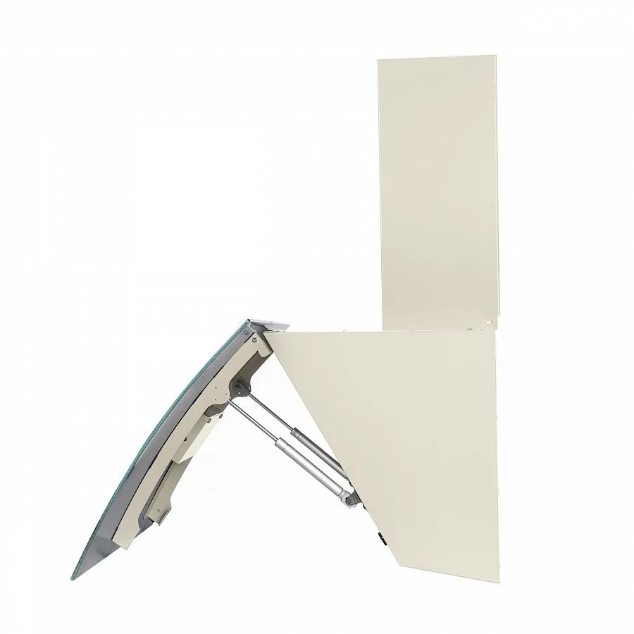 Современная вытяжка наклонного типа с богатым функционалом и интересным, дизайнерским решением, скрывающим жироулавливающий фильтр за изогнутым глянцевым стеклом (функция с газлифтом). Вытяжка выполнена из высококачественной стали и отделана прочным закаленным стеклом, позволяющим комфортно очищать его поверхность. Даже при активной эксплуатации вытяжки ее внешний вид не поддается каким-либо изменениям.